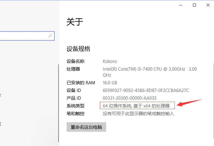 右键单击桌面左下角的windows窗口形状开始按钮,再点击系统,即可在“关于”选项卡中看到当前电脑的操作系统类型,如下图: