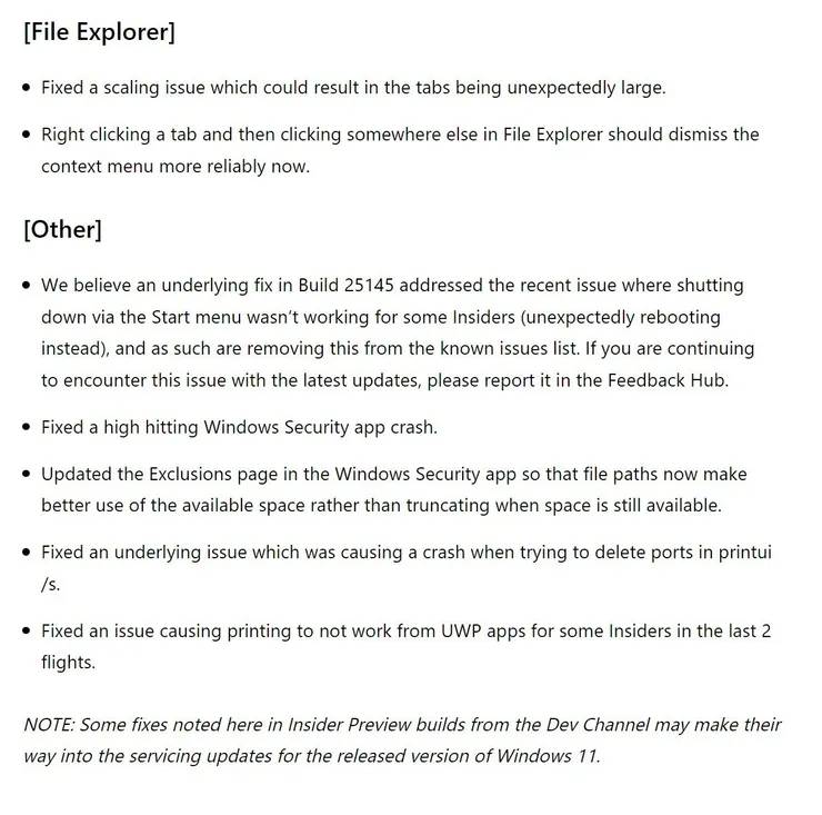 您可以在下面阅读 Microsoft 为 Windows 11 Insider Preview Build 25151 引入的完整修复集。