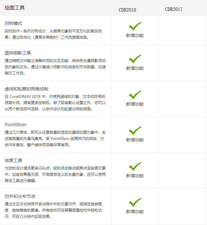 如图六,可以看出CorelDRAW 2018相比2017,又增强了cdr在绘画方面的功能。所以如果是更注重绘画功能的用户,推荐选择cdr2018。