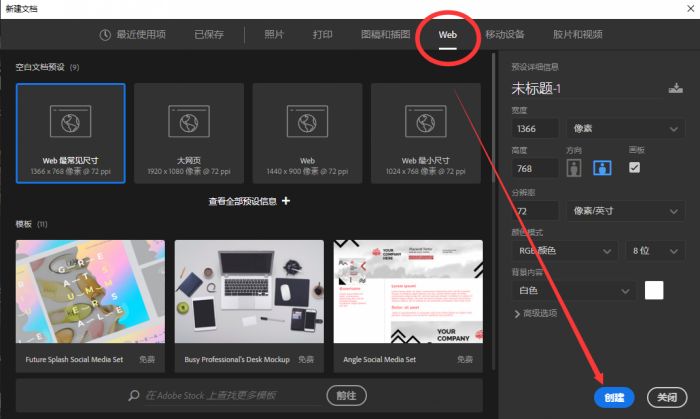 打开cdr,新建预设为“web”的文档,网页的分辨率一般为72dpi,颜色设置为RGB。就可以制作网页啦。