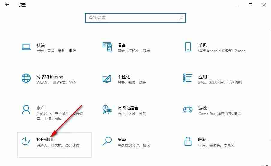 2、第二步,进入Windows设置页面之后,我们在该页面中点击打开轻松使用选项。