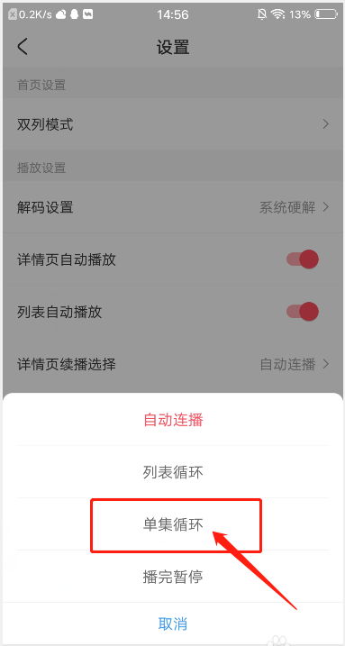 4、点击选择“单集循环”即可。