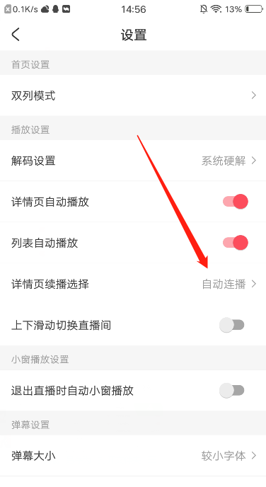 3、选择下方的“详情页续播选择”。