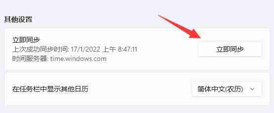 第五步:点击“其他设置”下的“立即同步”按钮,完成时间同步。(如下图所示)