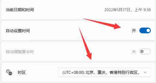 第四步:启用“自动设置时间”选项,并确保您的“时区”设置正确。(如下图所示)