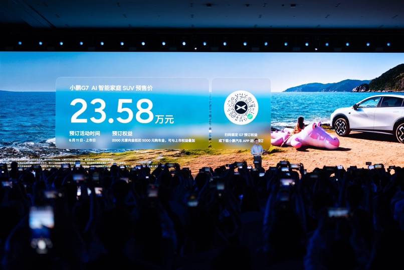 6月11日,小鹏G7正式亮相以及发布预售。作为2025年小鹏首款全新车型,小鹏G7共推出Max和Ultra两个版本,预售价23.58万元。在2025年6月11日起到小鹏G7上市日,购买小鹏G7的用户均可享2000元意向金抵扣5000元购车金的权益,同时可与上市权益叠加使用。