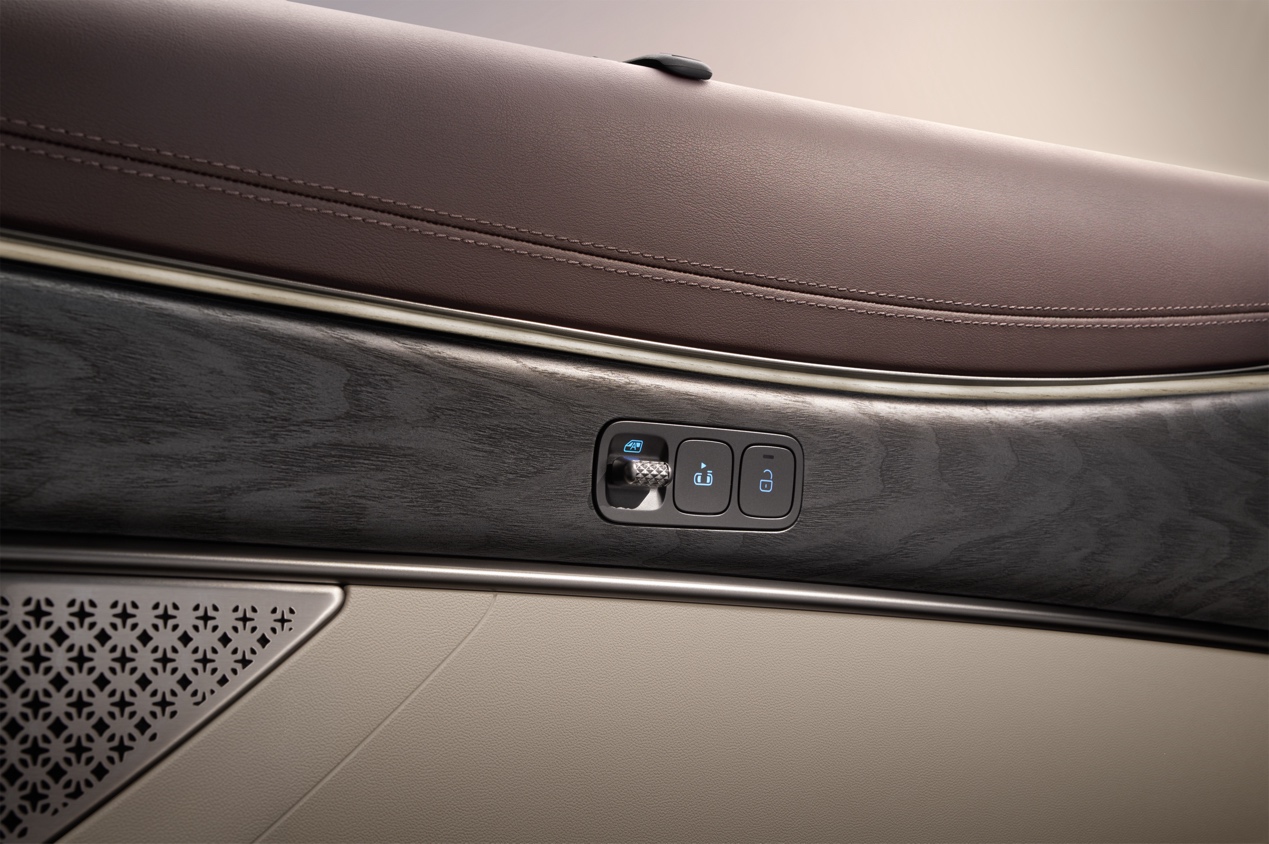 腾势D9至尊版采用了独特的“紫气凌云”双色车身设计,紫檀色与金色相互辉映,寓意着尊贵、吉祥和成功。这种双色工艺以豪华品牌标准打造,经过多次喷涂和烘烤,呈现出奢华的质感。