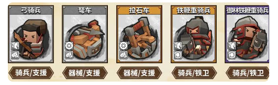 这套阵容的核心是:弓骑兵+弩车+投石车+铁鞭重骑兵+御林铁鞭重骑兵。