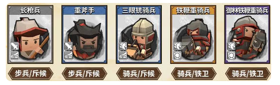 这套阵容的配置是:长枪兵+重斧手+三眼铳骑兵+铁鞭重骑兵+御林铁鞭重骑兵。