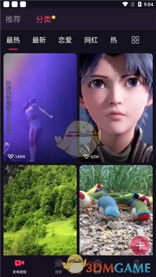 2、进入软件后,在“来电视频”中分为两个版块:推荐和分类,其中推荐版块中就是近期都非常热门的一些视频;
