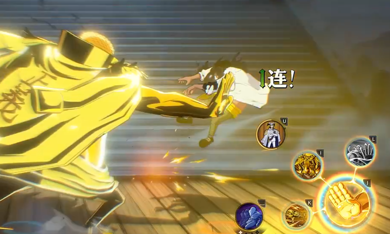 先说说普通状态下的战国。他的普通攻击总共有五段。前两段是连续出拳,速度很快,衔接也很流畅。第三段会向前突进撞击,直接把敌人击飞。第四段用左手来一记下勾拳,让连招更稳定。最后一段,一个飞踢收尾,一套连招就完成了。要是你长按普通攻击,战国就会进入连打模式,每次攻击都带上拳风特效,打击范围更大,视觉效果也更棒!