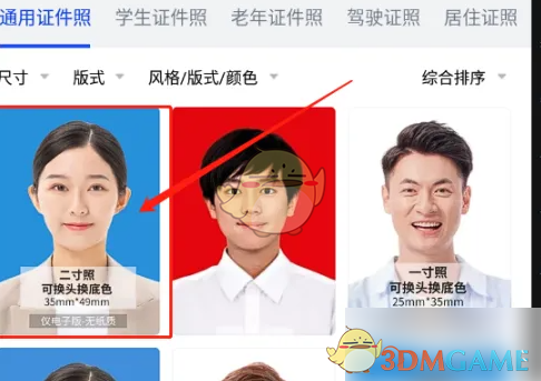 2、在“通用证件照”类别中点击二寸照片模板。