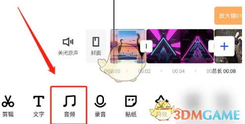 3、在底部工具栏找到并点击“音频”图标,这里就是添加音乐的入口啦!