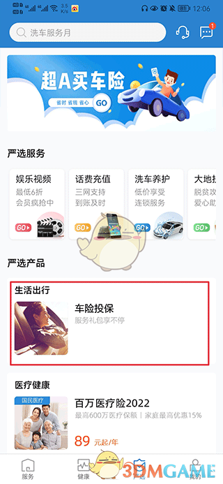 1、首先,打开某大型APP,在首页找到“严选”入口,点击进入后,就能看到“车险投保”的选项啦!