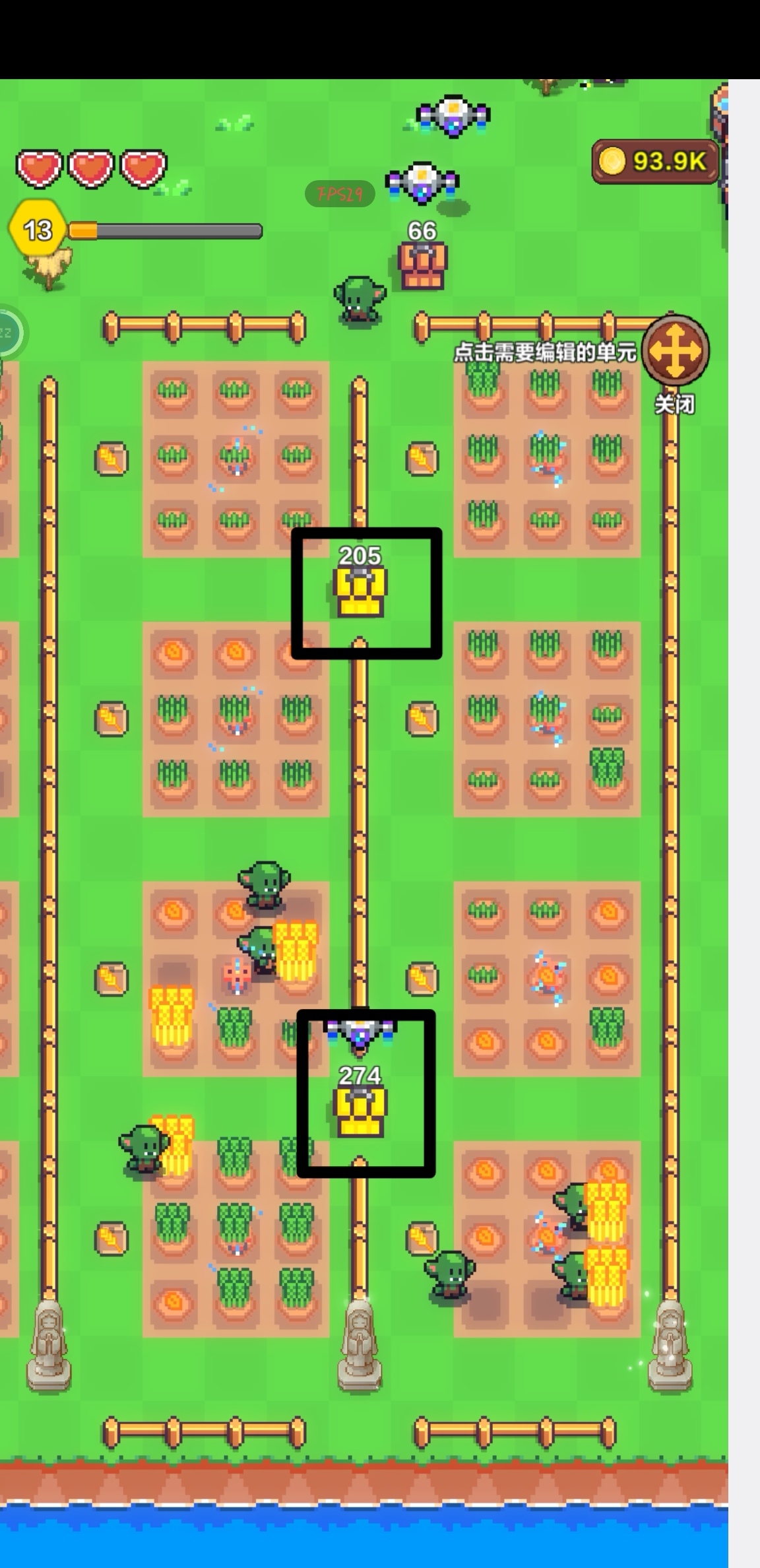 4、围栏的放置也很重要,如图所示。可以把四个角去掉,方便自己进出,但哥布林就出不去了。(图四)