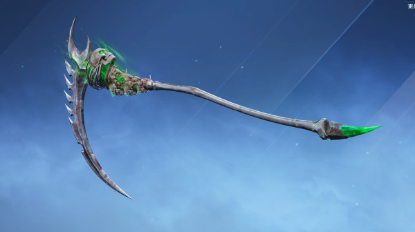 这把镰刀,第一眼看到就让人心头一颤!那巨大的镰刃,简直就是一轮凶狠的弯月,边缘的锯齿闪着寒光,感觉能撕裂一切。镰身和长柄连接处,一排排狰狞的骷髅头死死盘踞着,眼窝里跳动的绿火仿佛在低声嘶吼。修长的骨感镰柄,虽然是冰冷的金属,却透出荧绿色的流光,仿佛有生命一般。握着它,你简直就是战场上收割生命的死神本尊!