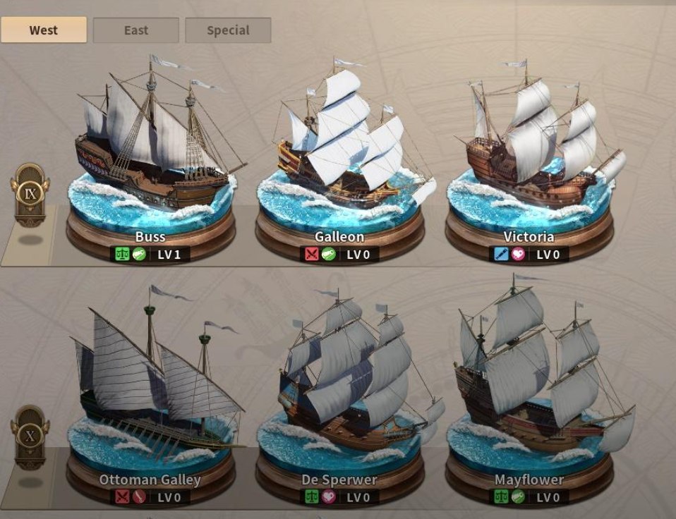 造船等级对制造十级船来说一直是很重要的。游戏中造船系统分为东方船和西方船两个系统,两者互不影响,所以造东方船等级不会提高西方造船等级,反之亦然。这就意味着玩家只能选择一条主线方向进行培养,否则因为资源分散而不能造出高等级船型。一般前期根据自身航线规划来选择系统,贸易路线玩家优先升级西方船,战斗扩张玩家更倾向东方船结构。随着造船等级的提高,十级船图也可以起到真正的作用,不仅可以制造主力船只,还可以逐步提高船队整体的装载、作战、续航能力。
