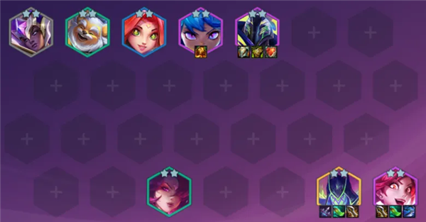 这套阵容的核心是围绕金克丝展开,搭配足够的前排和控制,保证金克丝有足够的输出空间。理想阵容是:芮尔、霞、可酷伯、妮蔻、波比、金克丝、奎桑提、韦鲁斯。这样可以组成5星守、2狙神、2斗士、2圣盾、2至高天羁绊。9人口时,可以根据情况补上布隆或者萨勒芬妮。