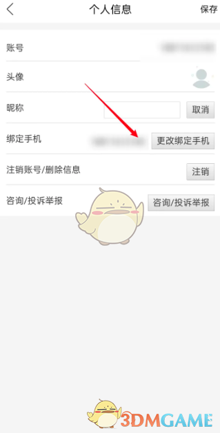 2、在个人信息页面,找到并点击“更换绑定手机”按钮。