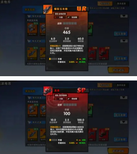 ur:绝对零度,爆裂玉米棒sp:鲸鲨,龙息,流派武器核心ur:爆裂玉米棒sp:龙息,火武器配合冰技能可打出蒸发反应。
