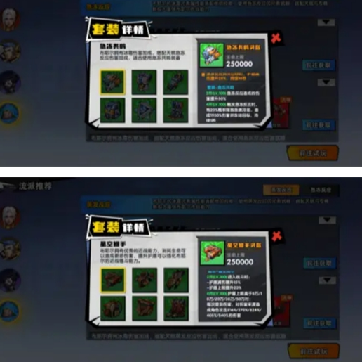 分别为两套:急冻套,星空套,推荐搭配:竞技套:急冻护手,急冻心核,星空头盔,星空衣服,星空背包,星空鞋子(与蒸发同理打反伤)副本套:急冻衣服,急冻护手,急冻心核,急冻鞋子,星空头盔,星空背包