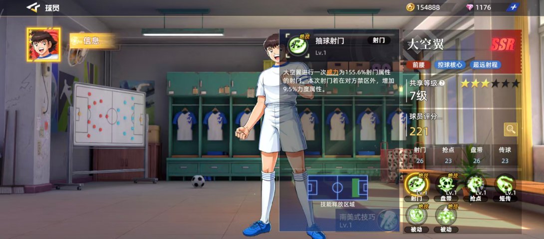 大空翼这SSR级别的球员,那可是实力超群!评分高达221,简直是游戏里的天花板!目前来看,能跟他一样胜任前腰位置,并且实力这么强的,还真没几个。他就是团队的核心,能控球,能远射,球场上的技能覆盖范围特别广!