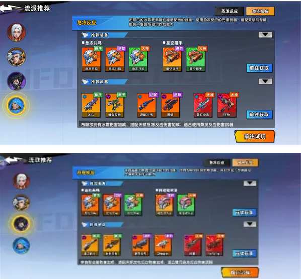 以上只放两张图,知道个大概,前期ur抽到什么用什么,不必非要抽到流派里的这把武器,属性对就能用,后期有了再替换上来,有人问,那流派推荐什么呢,各有各的强,推荐目前玩的最多的妮娅过载,布耶尔急冻,李放电