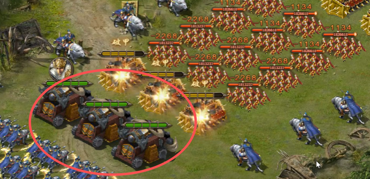 攻城车是游戏里的一类特殊兵种,专门用来破防,在攻城战中能发挥重要作用。攻城车的特点是破防能力强,但移动速度慢,比较笨重。虽然自身也有一定的防御力,但容易被敌人围攻,特别是害怕远程输出。因此,在使用攻城车时,一定要注意保护,前方要有盾兵掩护,避免被敌方弓箭手集火攻击。