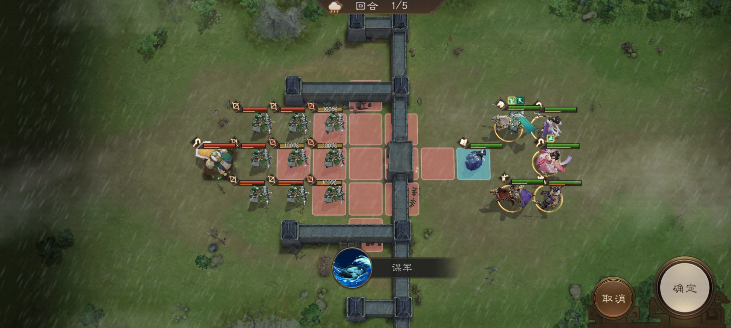 战斗一开始,别犹豫!让咱们的智囊郭嘉往前挪一小步,然后对着那四个来势汹汹的弩兵,狠狠地甩出“谋军”!这招厉害啊,两段伤害下去,弩兵的移动力直接被削到1点!嘿嘿,这样一来,他们就别想靠近咱们的关隘了,只能干瞪眼。