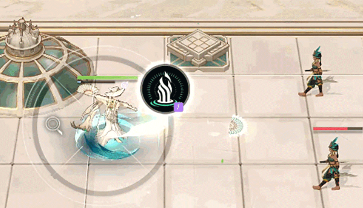 玛格丽塔的天赋会在战斗开始时自动触发:如果她身前有队友,那么这位队友就会进入“捍卫者”状态;如果没有队友,她自己就会获得这个状态。处于“捍卫者”状态的角色,在持有“捍卫印记”的时候,可以定期清除“和平雕塑”上的“破绽印记”。