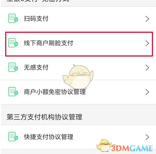 3、在“支付协议”页面,找到并点击“线下商户刷脸支付”。