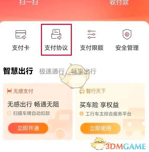 2、在“我的支付”页面,选择“支付协议”选项。