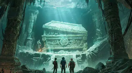 第一个隐藏宝箱位于雨林深处。当你到达雨林后,找到一个蛇形石雕,然后触发互动。接下来的步骤是:首先,激活左边的水位机关,让水位上升;然后,沿着浮木走到中央平台;接着,用火油瓶炸掉右边的岩壁障碍。清除障碍后,沿着原木上岸,跳到对岸,爬上阶梯;在高台上扔炸弹摧毁前方的石堆;最后,从左边的边缘跳入右边的水池,在水下就能看到宝箱啦!