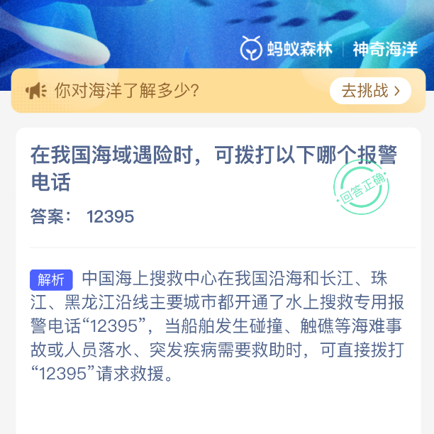您的位置:首页 >在我国海域遇险时可拨打以下哪个报警电话-支付宝神奇海洋今天答案最新2025年12月7日