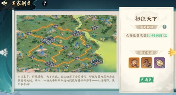 3.国家副本:当你的国家达到3级,就能解锁国家副本了。这个副本基本没什么难度,完全是送福利的,点将令什么的,随便拿!