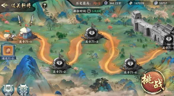 2.过关斩将:这个玩法绝对是点将令的大户!主线打到5-15就能解锁(大概半小时),通关每个关卡的第五节都会送点将令。越往后,奖励越丰厚,据说累计能拿到1000多个!第一天保底也能拿40多个,千万别小看它。
