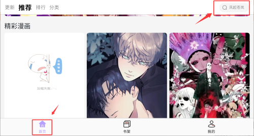 2、通过首页搜索框输入漫画名称查找作品。