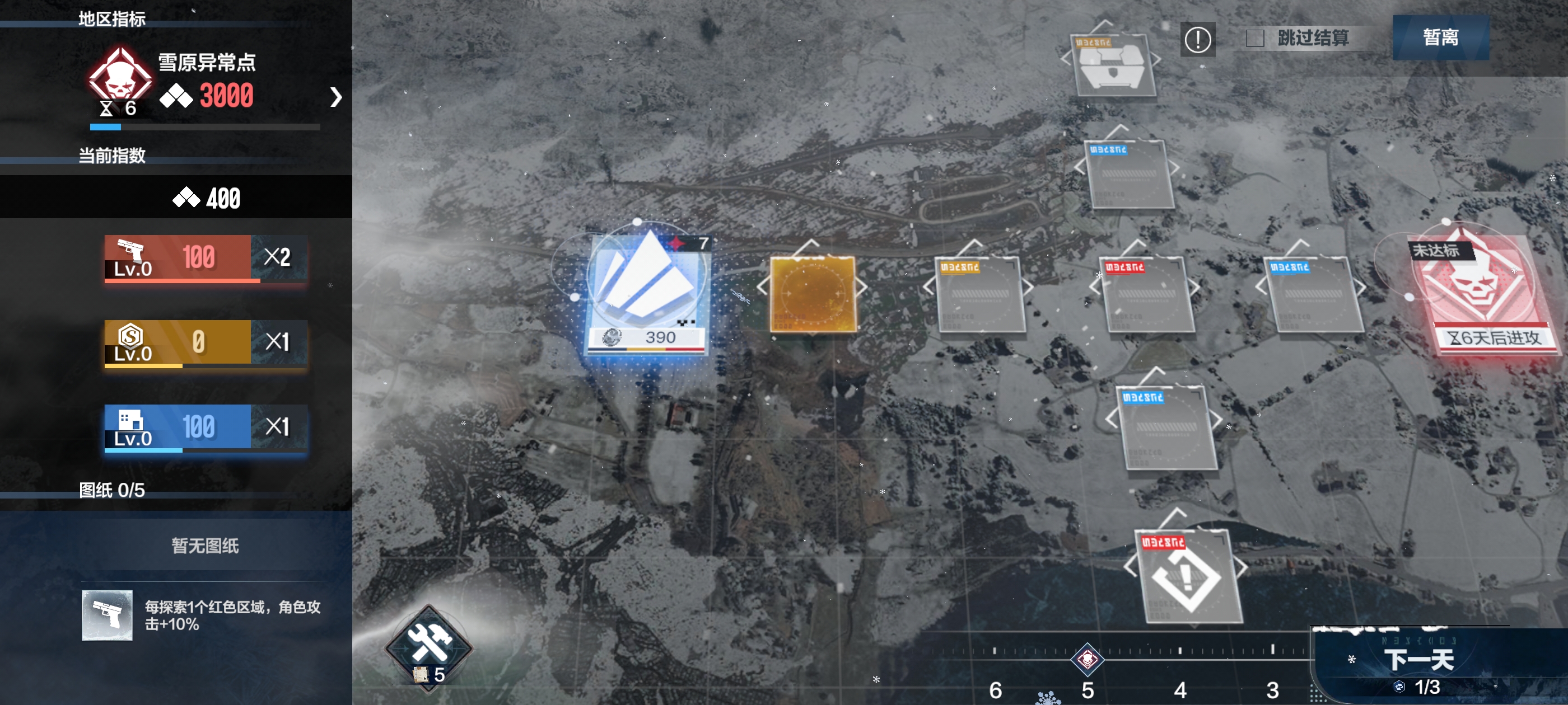 6、优先向BOSS所在位置探索,方便观察BOSS进攻时间,便于安排行动力
