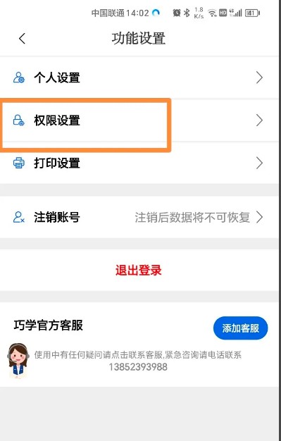 点击权限设置进入