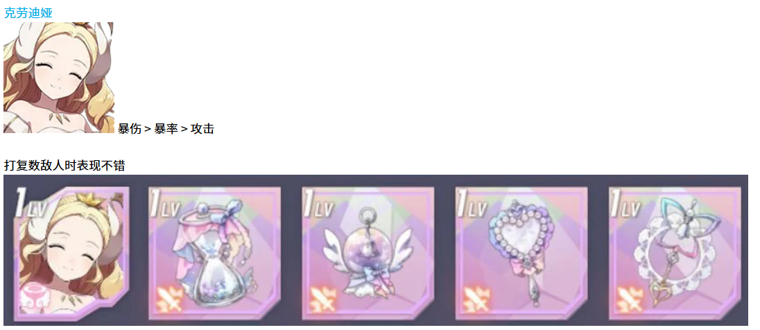 再看克劳迪娅,她的定位跟尤里娅有些不同。克劳迪娅更偏向输出方向,特别是面对多个敌人的时候,她的群体伤害能力相当突出。配装思路上,暴伤是最优先的属性,然后是暴击率,最后才考虑攻击力。这个优先级顺序其实有讲究,暴伤高了之后,配合暴击触发能打出很可观的伤害倍率,而单纯堆攻击力的性价比反而没那么高。克劳迪娅的技能有范围伤害效果,在打多目标副本或者竞技场遇到群体战的时候,表现确实不错。