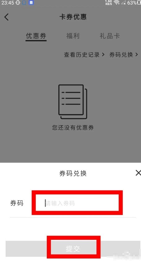 3. 到了这一步,就简单了!在弹出的输入框中,准确无误地填入您手中的优惠券码,然后点击“提交兑换”。只要券码有效,您的优惠券就会立刻到账啦!