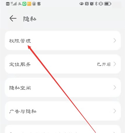 3. 进入隐私页面后,通常第一个就是【权限管理】,毫不犹豫地点进去。这里是所有应用权限的“总开关”。