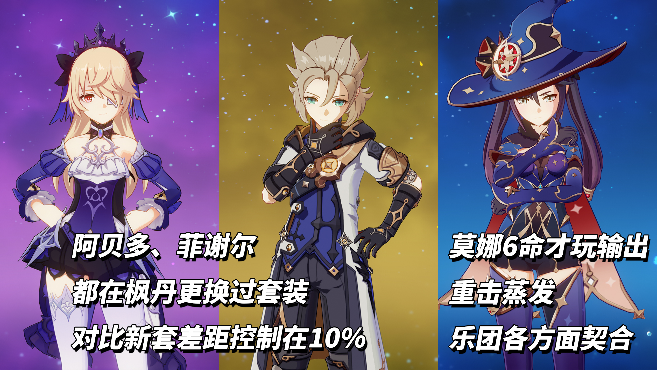 现有魔导角色中,可用此套装角色如下,莫娜、杜林、柯莱、阿贝多、温迪、菲谢尔、雷泽。我们按照提升率进行排序(括号中为原本圣遗物):