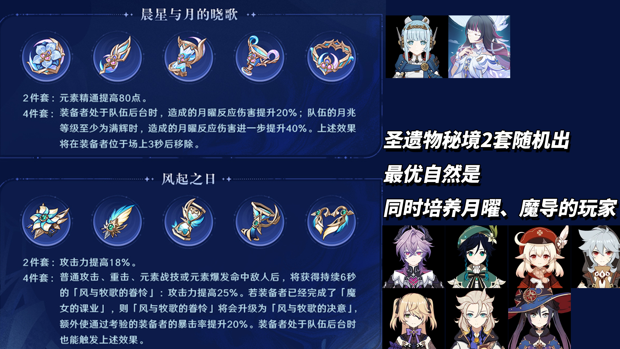 以上就是本期「月之四」新圣遗物分析,有计划刷取的玩家这段时间先囤点儿摩拉、角色材料,为后续“幽境危战额外产出圣遗物时段”匀出更多可分配树脂(体力)~