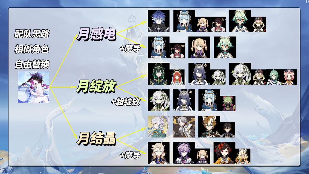 目前哥伦比娅并未强制月兆满辉,灵活性较高,配合上述思路可对相似角色进行替换。