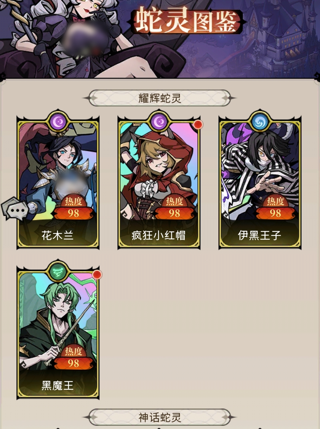 人们能在蛇灵系统中查看所有自己已经获得的蛇灵,并能在选定不同的蛇灵种族后,查看各种族蛇灵的收集情况,并且它还提供了按品质排序的图鉴功能,它里面会列出游戏内所有已经实装的蛇灵,其中头像灰色的蛇灵代表着玩家还未获得,已经获得的蛇灵则会以正常亮度显示。倘若玩家们想实现全图鉴收集,可去利用该功能针对性地进行蛇灵收集,以此来拿到所有的蛇灵。