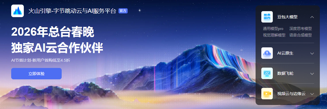 火山引擎是字节跳动旗下的云和AI服务平台,提供大模型、云计算及多模态技术支持,最新动态是成为2026年央视春晚独家AI云合作伙伴。下面给大家带来了火山引擎官网入口:https://www.volcengine.com/。