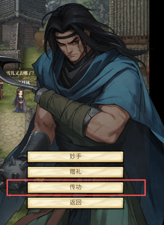 拿着侠客的【信物】,可以请求该侠客【传功】。