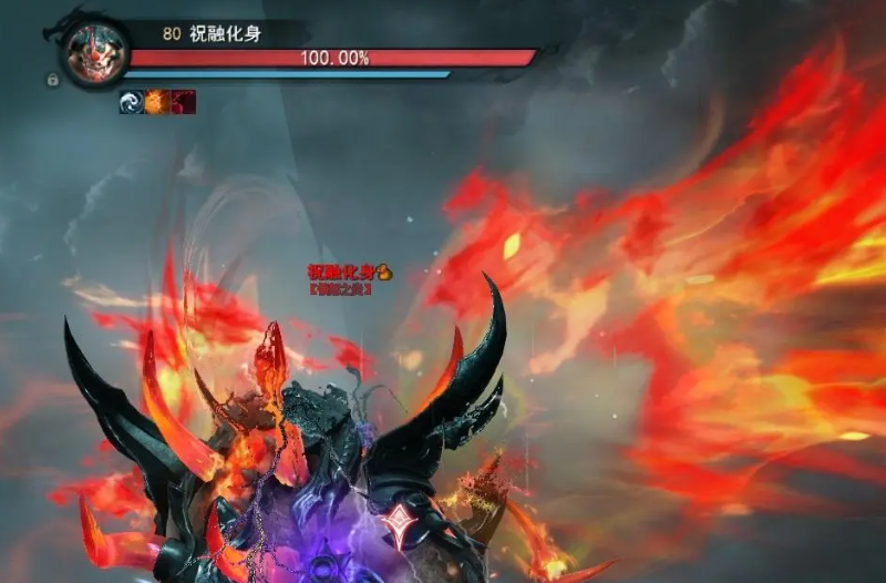 当四支小队全部成功占领预设山头后,山顶将浮现祝融化身。此为副本关键机制节点:击败该化身后,全场玩家将获得“气绝”状态增益。处于气绝状态下,角色可释放觉醒技,并对祝融本体造成额外血量压制效果,大幅缩短第二阶段战斗时间。