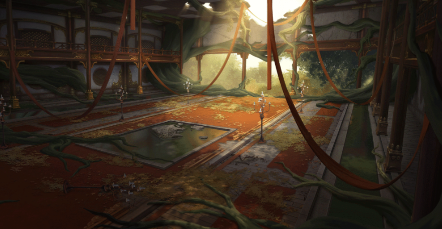 扶桑神园为《天下万象》中等级要求明确的高难度团队副本,面向69级角色开放,需组队10人方可进入。副本整体围绕“神界异变”展开——原本由扶桑引导、旱魃镇守的新神域正遭遇崩解危机。玩家首先进入的核心区域为“日出大道”,此处曾是神界生机之源,如今却草木枯萎、灵光黯淡,昔日鼎盛气象已荡然无存,环境细节高度呼应剧情衰变主题。
